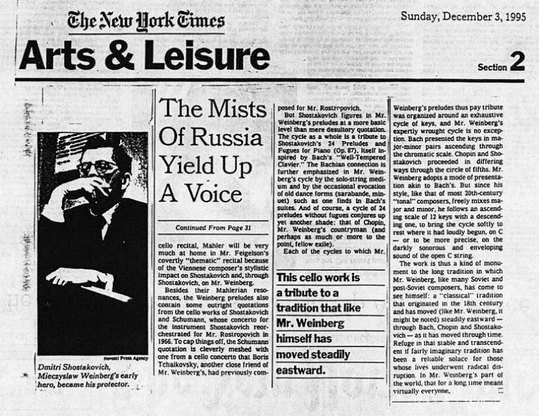 THE NEW YORK TIMES ARTS EDITORIAL ABOUT MIECZYSLAW WEINBERG