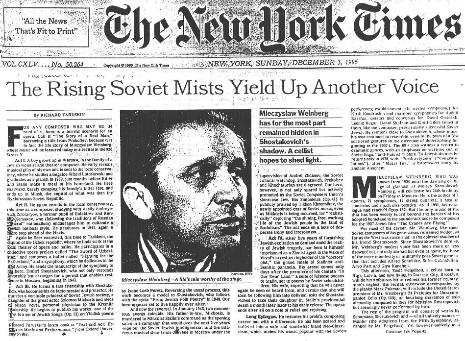 THE NEW YORK TIMES ARTS EDITORIAL ABOUT MIECZYSLAW WEINBERG